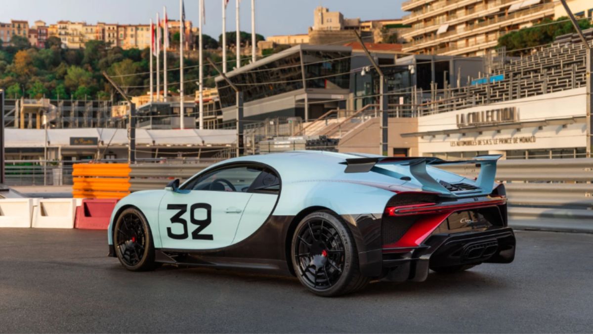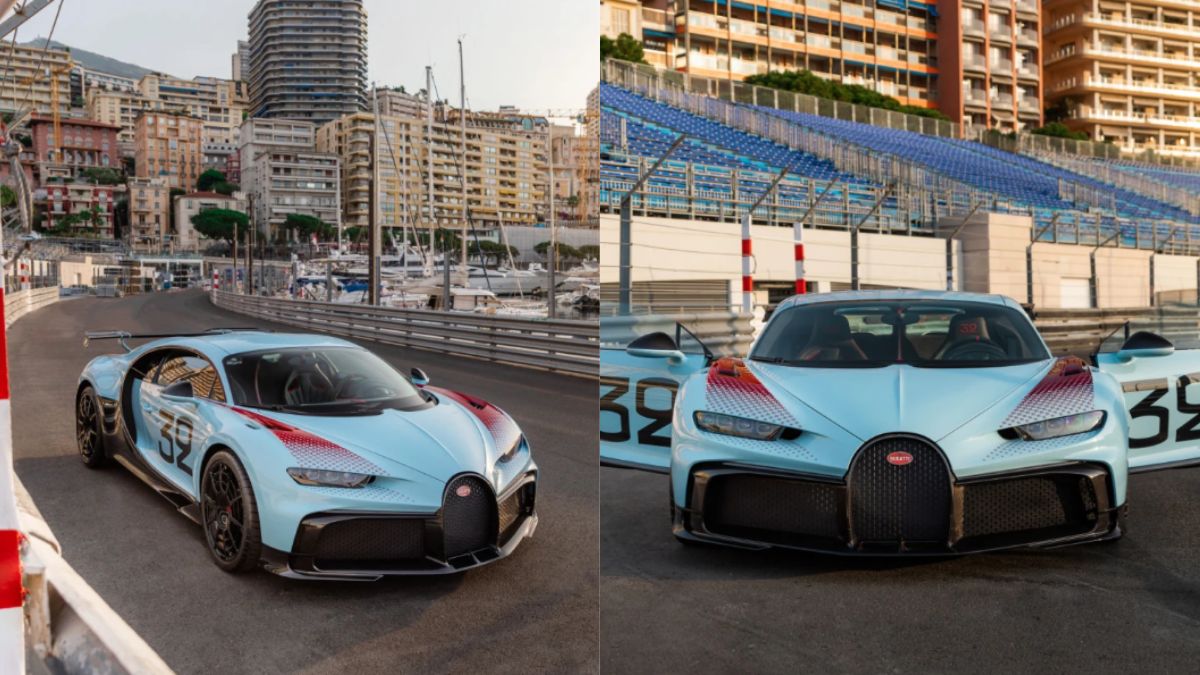 The Chiron Pur Sport with the Grand Prix theme is the third model from Bugatti. One model was showcased earlier in 2023 with a striking two-tone finish of matte black carbon over matte jet grey. Another model was unveiled in December 2021 that featured a combination of blue elements with red and gloss black accents.