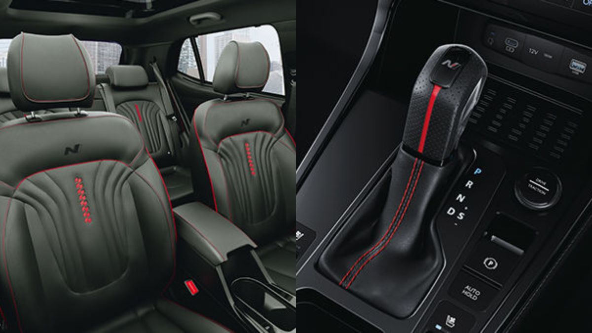 The interior of the Hyundai Creta N Line will feature an all-black theme with red accents on the upholstery and red piping on the seats. The dashboard will have red accents and red ambient lighting. A new N Line-specific steering wheel with three spokes, leather-wrapped and with red stitching, will be included. Additionally, there will be a new N Line-specific gear lever with red accents and red stitching, as well as metal pedals to enhance the sporty feel. While most of the dashboard and centre console design remains unchanged, the Creta N Line will feature twin displays for the instrument cluster and infotainment system. Other features include a wireless charger, ventilated seats, electronic parking brake, auto hold, 360-degree camera, and ADAS.