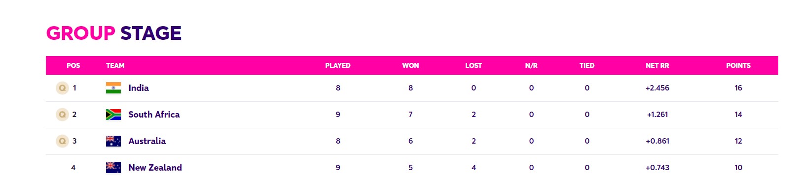 Australia, currently having a NRR of +0.861 needed a big victory against Bangladesh to surpass the healthy NRR of South Africa (+1.261). But, Bangladesh posted a total of 306 runs in the first innings, and Australia could not chase down the target within 20 overs.