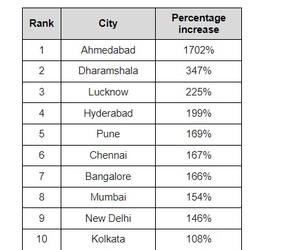 "While Ahmedabad emerged as the obvious fan favourite, the host cities of Dharamshala (347%), Lucknow (225%), Hyderabad (199%) and Pune (169%) have all witnessed search spikes around the match dates," the report read.