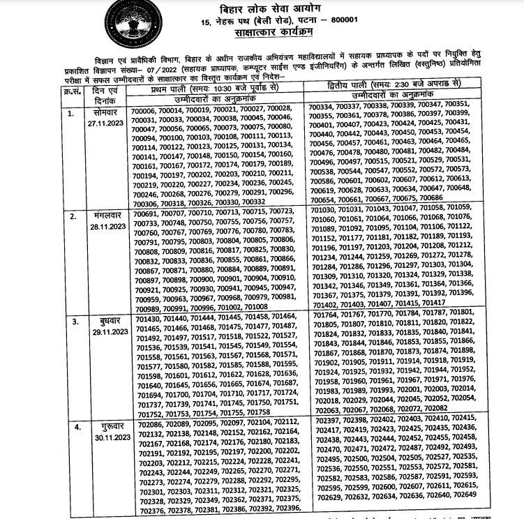 BPSC Assistant Professor Recruitment: The Bihar Public Service Commission on Wednesday announced the dates for the BPSC Assistant Professor DV, Interview. The schedule has been issued for Assistant Professor, Computer Science and Engineering Competitive Examination. Eligible candidates who are going to appear for the document verification and interview process can check the scheduled notification at bpsc.bih.nic.in.