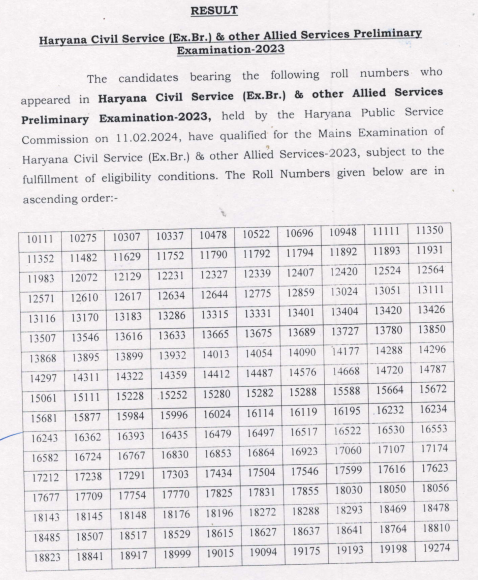 After considering every objection raised by the candidates in their response, the HPSC HCS Prelims result was issued. Candidates whose roll number appears on the list will be eligible to appear in the main examination. The HPSC HCS main written examination is expected to be conducted on March 30 and 31, 2024. The main exam will have four papers of 600 marks.