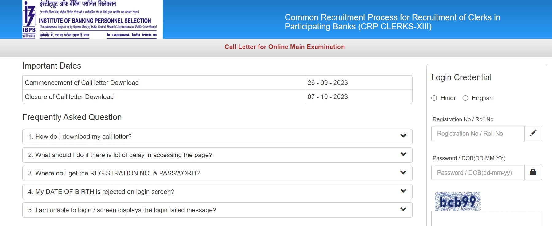 Note: Download the IBPS Clerk Mains call letter and take a printout for the future reference.