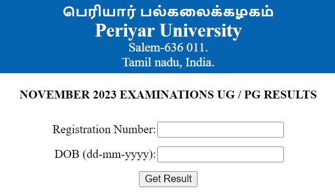 Periyar University November Result 2023 Link Activate At periyaruniversity.ac.in (Image: Official)