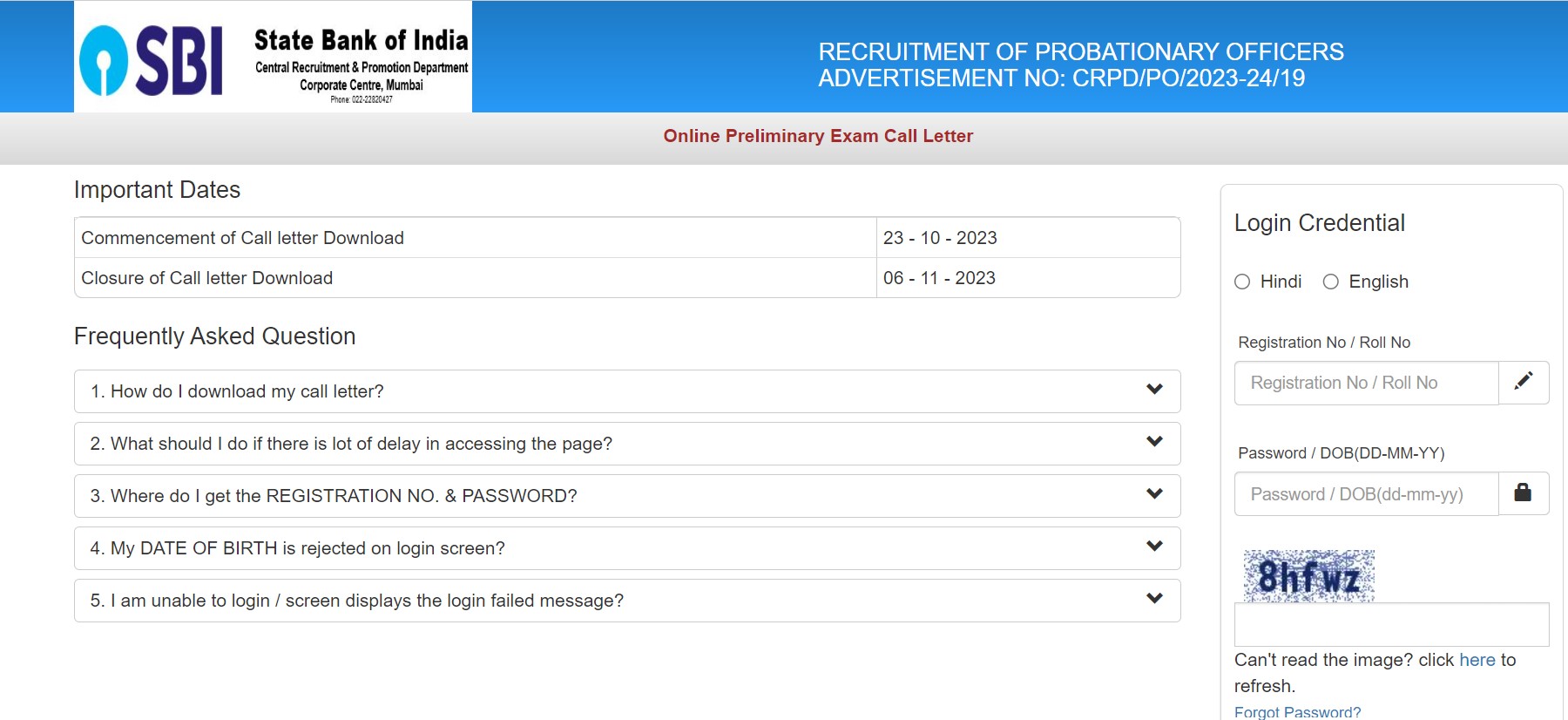 Candidates will have to enter the registration number and password to access the dashboard to download the SBI PO Prelims admit card 2023. Candidates will be able to download their admit cards from October 23 to November 6, 2023. Candidates must bring their SBI PO Prelims admit card on the day of the examination along with the valid ID proof. Candidates who fail to bring their hall ticket will not be allowed to enter the examination hall.