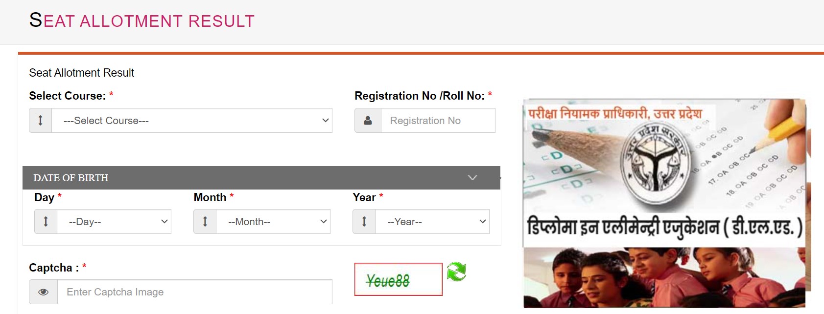 Step 2: Click on the link UP DEIEd counselling result on the homepage