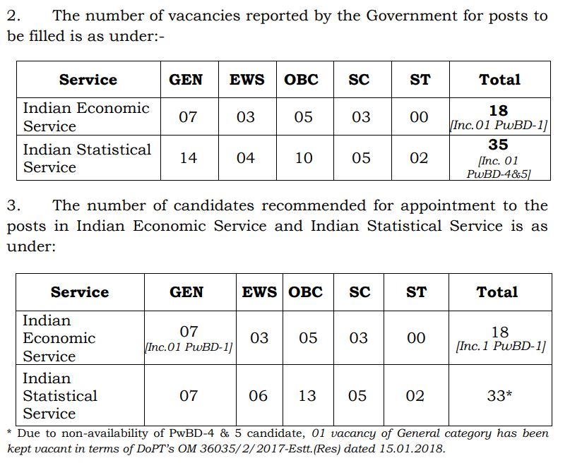 "Based on the results of the written examination of the Indian Economic Service / Indian Statistical Service Examination, 2023 held by the UNION PUBLIC SERVICE COMMISSION from 23rd to 25th June, 2023 followed by interviews for Personality Test from 18th to 21st December, 2023, the following are the lists, in order of merit, of the candidates who have been recommended for appointment to the posts in Indian Economic Service and Indian Statistical Service," reads the official notification.