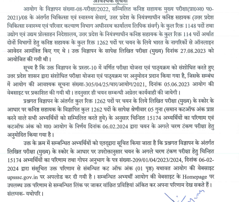 UPSSSC Combined Junior Assistant Main Result: The Uttar Pradesh Subordinate Services Selection Commission (UPSSSC) on Wednesday declared the results of the Combined Junior Assistant Mains exam 2022. According to the notification, as many as 15,174 candidates were shortlisted for the next round. Candidates who took the UPSSSC combined junior assistant main exam can check and download their scorecard at upsssc.gov.in.