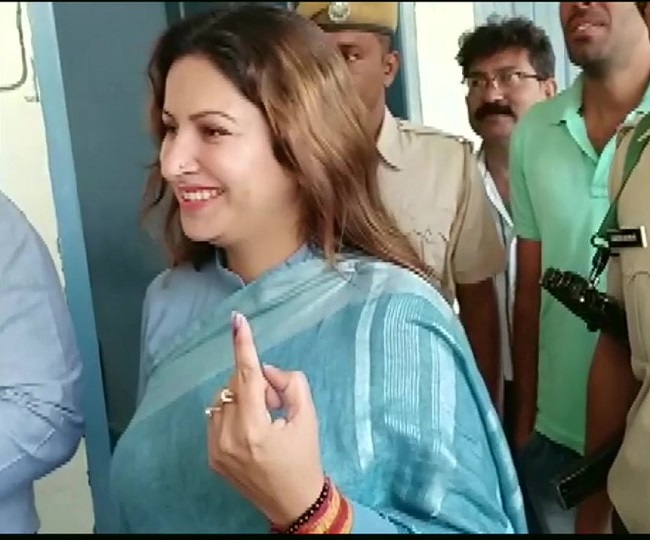 8:11 am: Haryana: TikTok star Sonali Phogat who is contesting on a BJP ticket from Adampur constituency, after casting her vote. She is up against senior Congress leader Kuldeep Bishnoi.