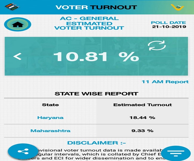12:00 pm: Voting percentage of Maharashtra and Haryana till 12 pm was recorded at 16.28%