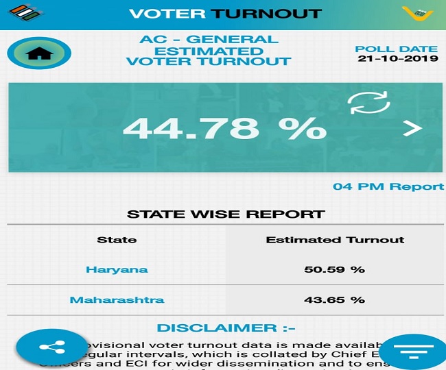 4:00 pm: 43.65% voter turnout recorded in Maharashtra till 4 pm: ECI Voter Turnout App