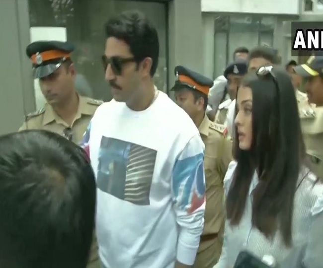 3:42 pm: Jaya Bachchan, Abhishek Bachchan and Aishwarya Rai Bachchan leave after casting their vote at a polling booth in Juhu, Mumbai