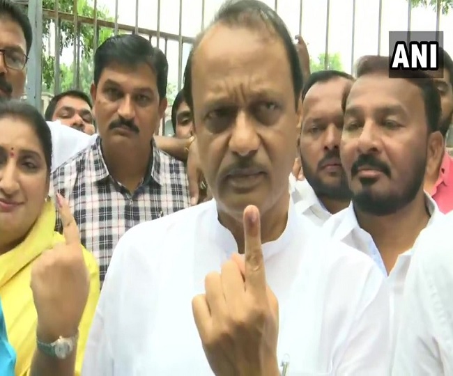 7:42 am: Maharashtra: Senior Nationalist Congress Party (NCP)leader and candidate from Baramati, Ajit Pawar after casting his vote, he is contesting against BJP's Gopichand Padalkar