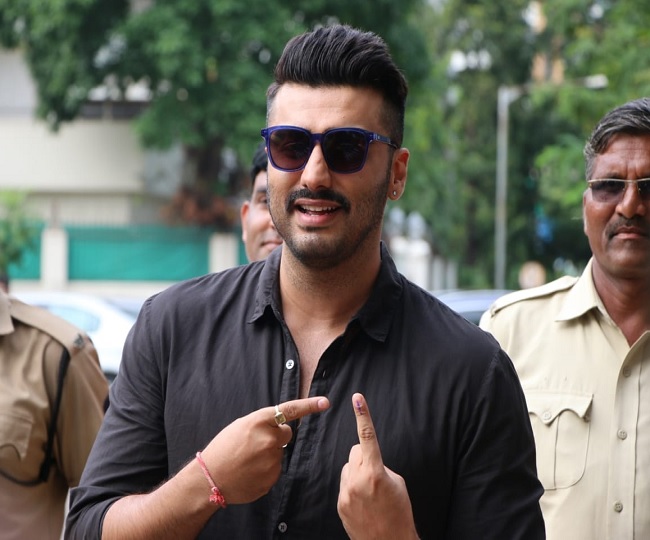 3:53 pm: Bollywood actor Arjun Kapoor flaunts his inked finger after casting his vote in Mumbai.