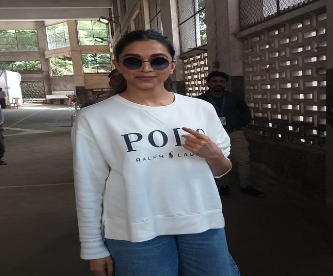 2:30 pm: Deepika Padukone after casting her vote at a polling booth in Bandra (West), Mumbai.