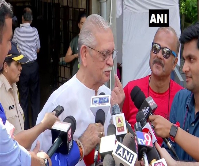 11:45 am: Mumbai: Veteran actor Prem Chopra and Director-lyricist Gulzar leave after casting their votes at a polling booth in Bandra(West)