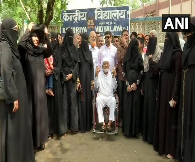 4:13 pm: Pune: Haji Ibrahim Aleem Joad, a 102-year-old man cast vote along with his family at a polling booth in Lohegaon, says," I was admitted to hospital for 4 days but today I'm here to cast my vote. I urge everyone to come forward & vote."
