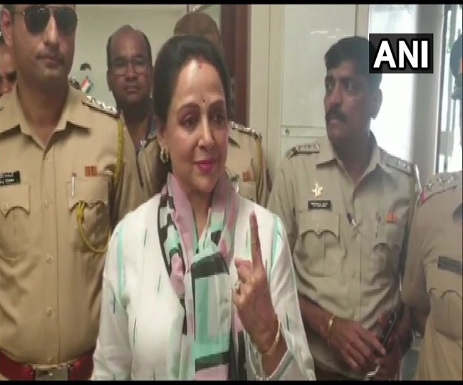 1:29 pm: Actor and BJP MP Hema Malini cast her vote at a polling booth in Mumbai's Andheri (West).