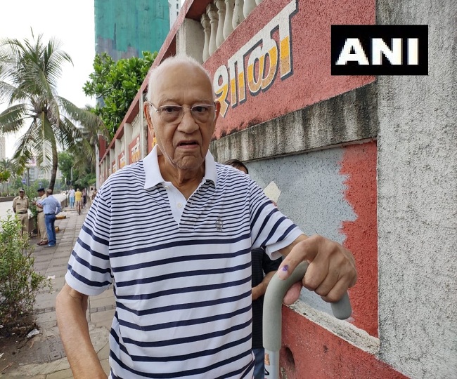 07:28 am: Former Mumbai Police Commissioner Julio Ribeiro after casting his vote for the Worli Assembly constituency.