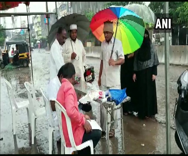 9:43 am: People arrive to vote amid heavy rain, in Latur.