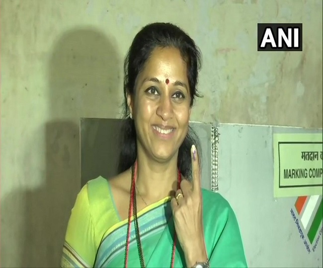 8:30 am: Maharashtra: Senior Nationalist Congress Party (NCP)leader Supriya Sule after casting her vote in Baramati. Her cousin and NCP leader Ajit Pawar is contesting against BJP's Gopichand Padalkar from the constituency