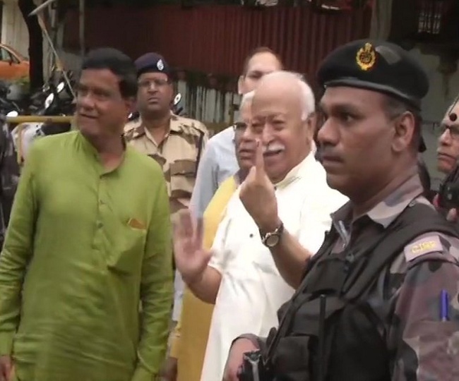 07:21 am: RSS chief Mohan Bhagwat casts his vote in Nagpur