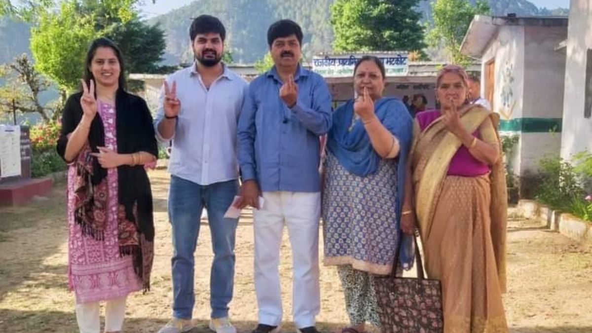 8:40 AM: Congress candidate from Pauri Garhwal Lok Sabha seat, Ganesh Godiyal casts his vote along with his family.