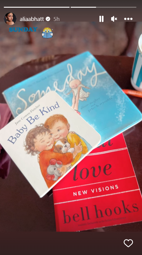 Alia, who is a devoted mother and is successfully managing her career while embracing her newfound motherhood, recently shared a photo of children's books placed on her table with the caption "Sunday read," on Instagram story. It's evident that Alia is instilling positive habits in her daughter by reading to her, as seen by the books Baby Be Kind and Someday. Alia is spending her Sunday bonding with her daughter Raha and creating precious mother-daughter memories.