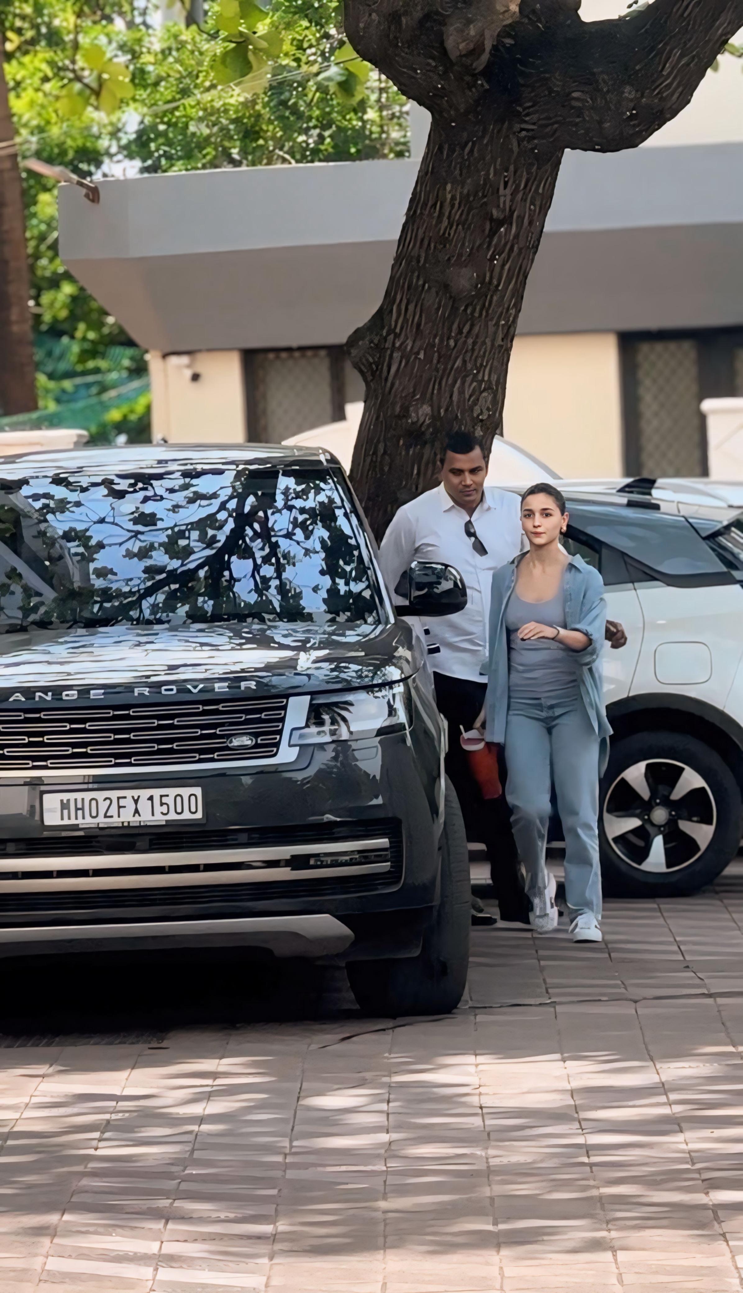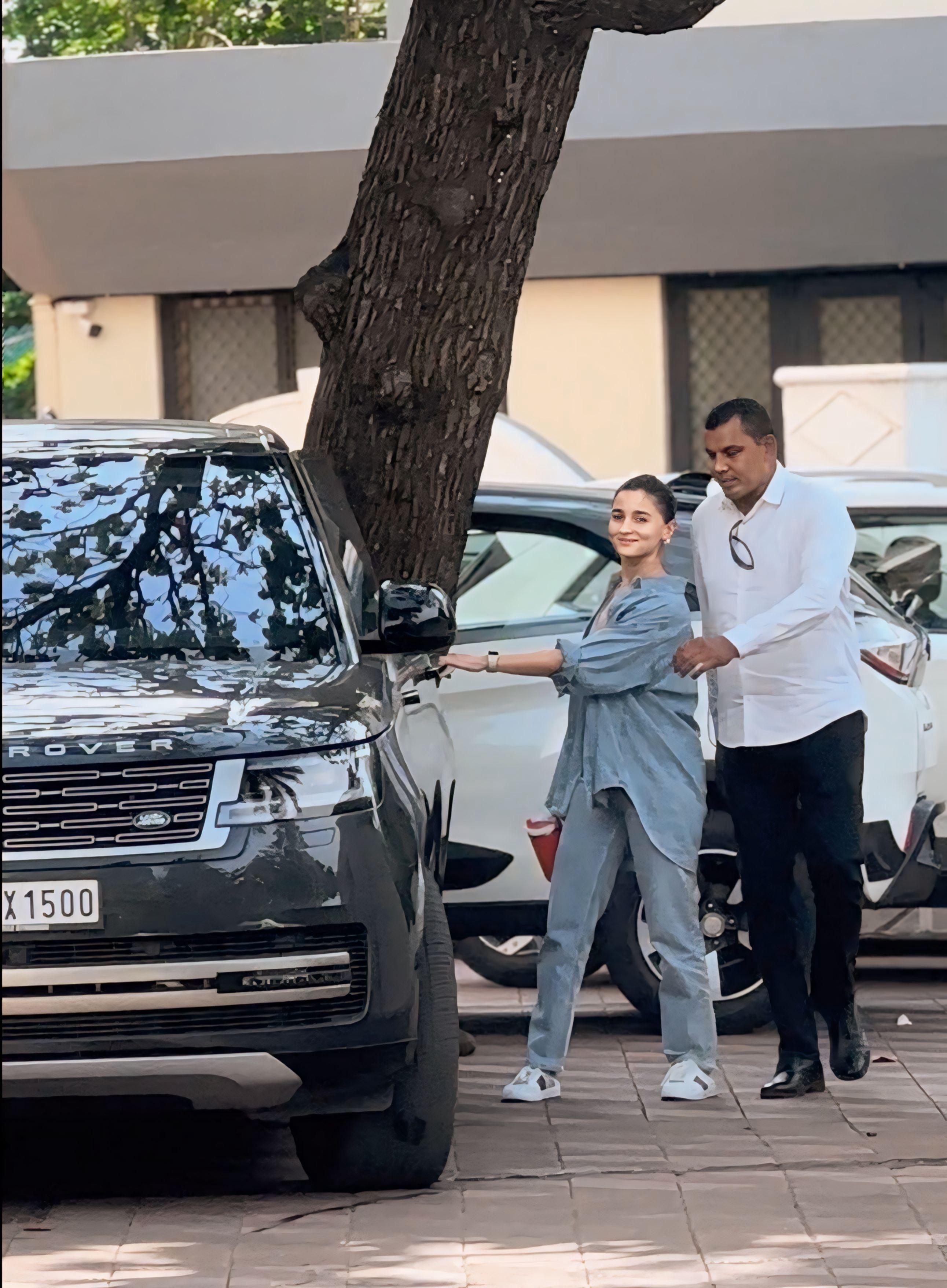 Alia looked beautiful in casual blue attire. She smiled after seeing the paparazzi and went inside her car.