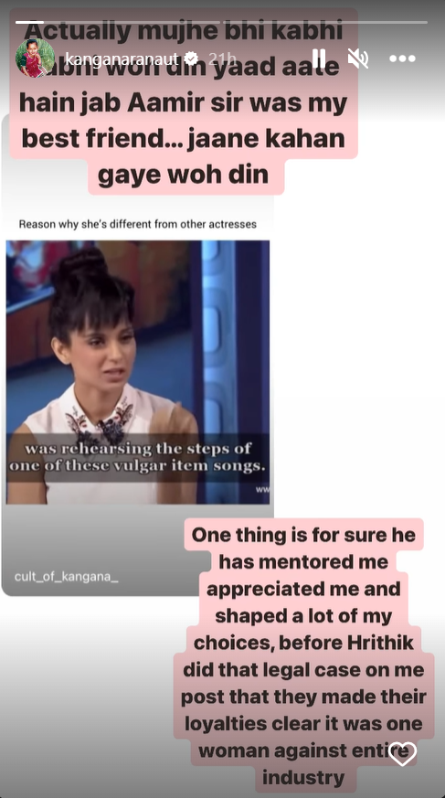 Kangana Ranaut posted a note while sharing the clip, stating that Aamir Khan used to be her closest friend. However, she claimed that their relationship changed after her well-known dispute with Hrithik Roshan. Kangana stated that Aamir's allegiances became clear because of Hrithik.