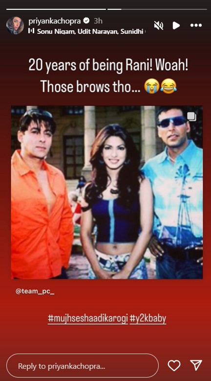 Sharing the picture, Priyanka wrote, "20 years of being Rani! Woah! Those brows tho... #mujhseshaadikarogi #y2kbaby."