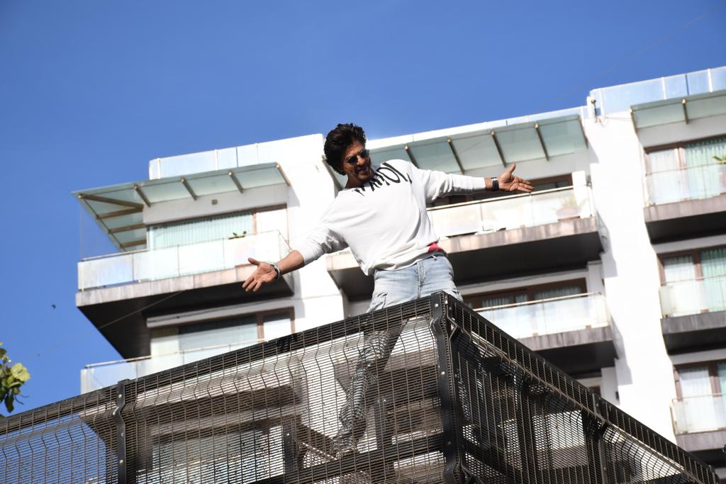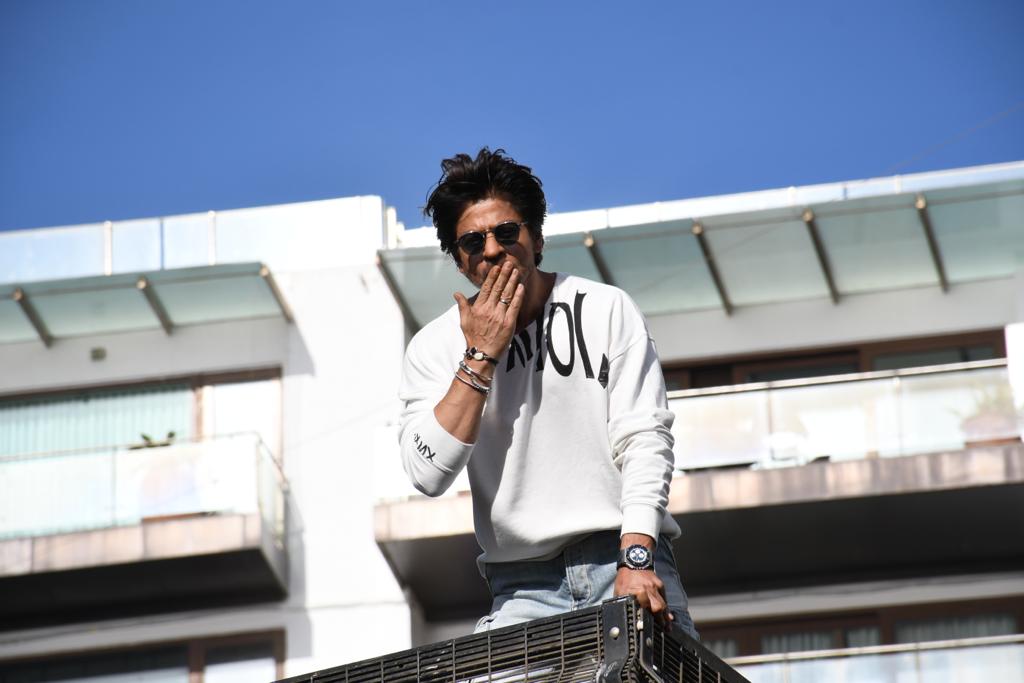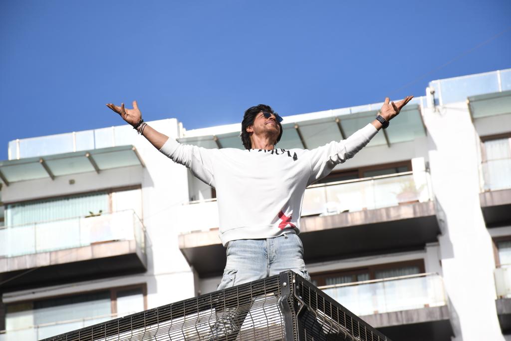 The joyful gathering was in celebration of the world TV premiere of his film Pathaan. To the delight of his fans, the actor surprised them by stepping out onto his balcony, flashing a bright smile and embracing them with open arms (recreating his iconic pose).