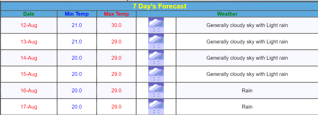 According to IMD's forecast, Bengaluru will see light rain until Thursday, followed by heavier downpours on Friday and Saturday. Today, on August 12, the temperature in Bengaluru is expected to hover around 26 degrees Celsius, with a minimum and maximum of 21 degrees Celsius and 30 degrees Celsius, respectively. The city will also experience high humidity levels of 82 per cent and brisk winds of up to 66 km/h.