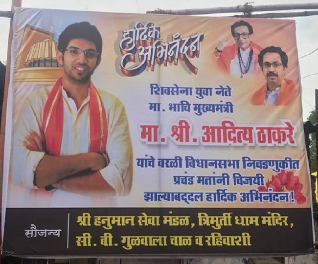 11:07 am: Mumbai: Poster calling Aaditya Thackeray as future Chief Minister come up in Worli, the constituency from where he has been elected to the state Assembly.