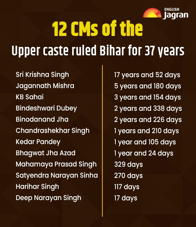 The upper caste’s KB Sahai for 3 years and 154 days, Binodanand Jha for 2 years and 226 days, Chandrashekhar Singh for 1 year and 210 days, Kedar Pandey for 1 year and 105 days,