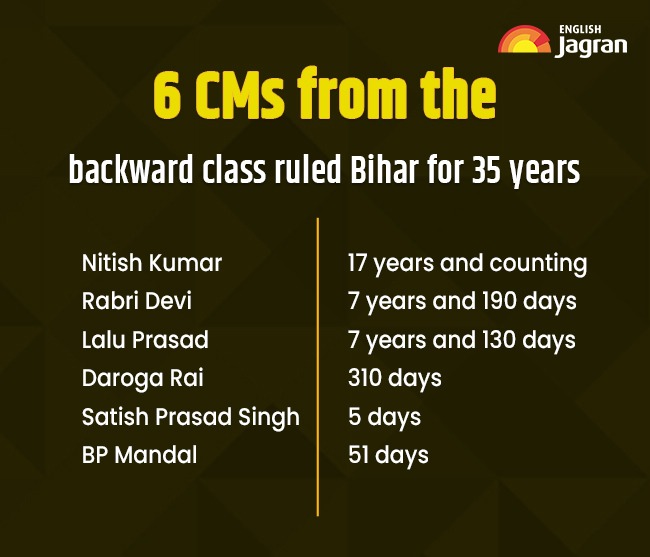 Among backwards, OBC got the maximum chunk with five CMs and 35 years of rule. Nitish Kumar, the present CM of Bihar, has served at the top post for over 17 years. He belongs to the OBC. Rabri Devi, another OBC leader ruled Bihar for 7 years and 190 days. Lalu Yadav was CM of Bihar for 7 years and 130 days.