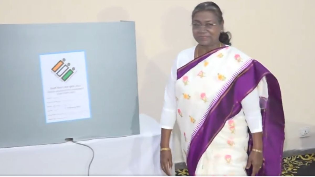 President Droupadi Murmu voted at Dr. Rajendra Prasad Central School in New Delhi. Long queues have been seen at polling booths across the capital since early morning.
