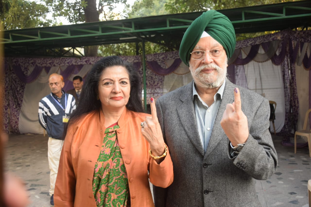 Union Minister Hardeep Singh Puri voted at the Anand Niketan polling booth in South Delhi, urging everyone to participate in the democratic process and encourage their families and relatives to vote.