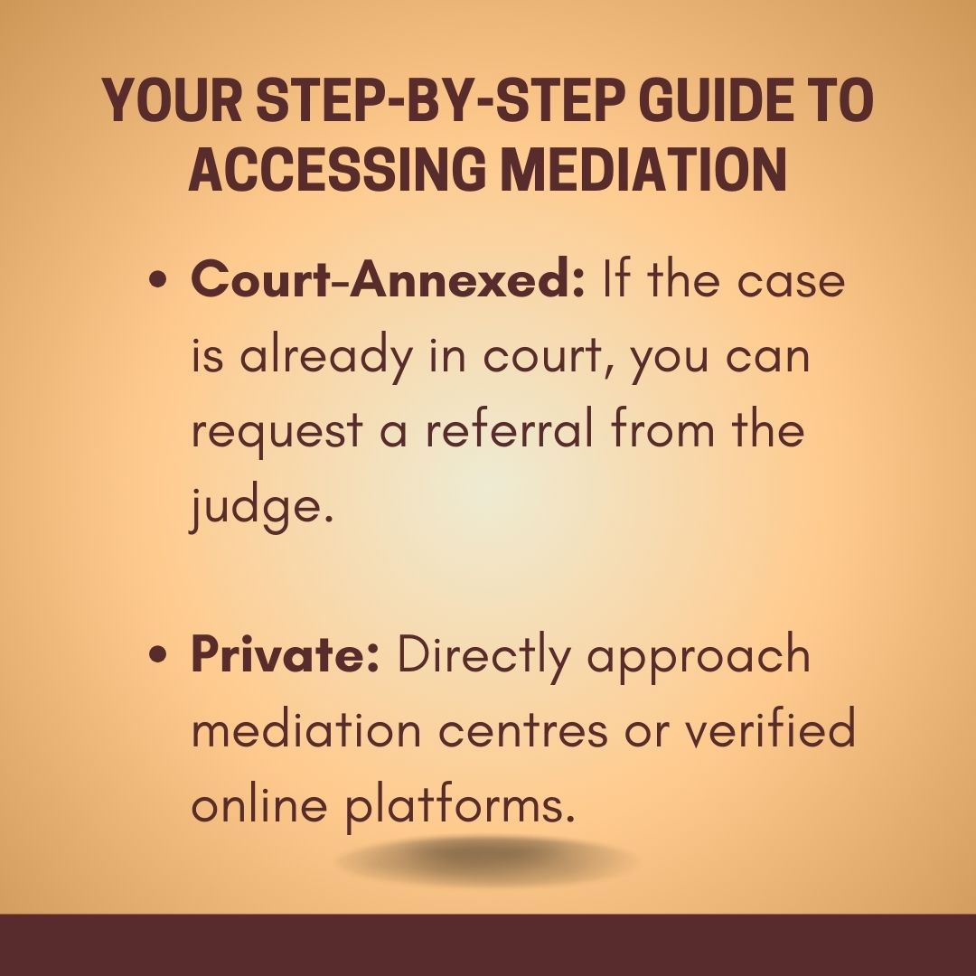 3. In case of private mediation, people can approach mediation centres like the Delhi High Court Mediation and Conciliation Centre, which offer their services for private dispute resolution.