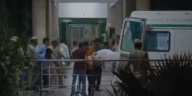 Visuals from outside the hospital in Banda. (Image: Jagran)