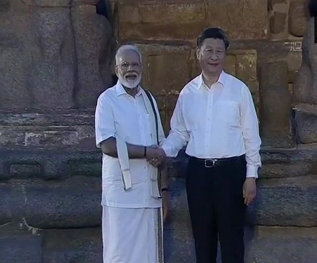 Chennai | Jagran News Desk: Prime Minister Narendra Modi and Chinese President Xi Jinping on Friday met for the second informal meet at Mamallapuram in Tamil Nadu. PM Modi took Jinping on a temple tour of Mahabalipuram, starting with Arjuna's Penance where he first received the visiting dignitary. It was followed by a tour to Panch Rathas, with the Shore Temple next on the itinerary.