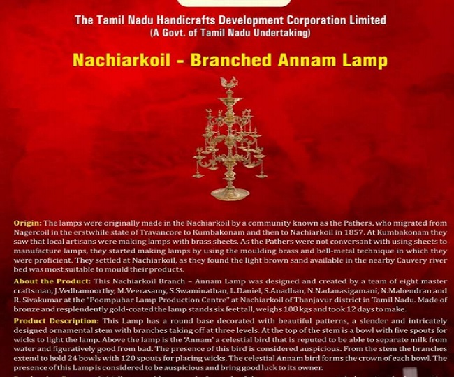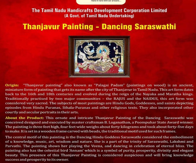 19:15 pm: Gifts to Chinese President Xi Jinping from Prime Minister Narendra Modi: Nachiarkoil -Branched Annam Lamp and Thanjavur Painting-Dancing Saraswathi.
