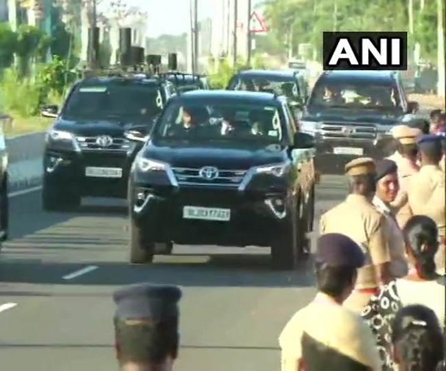 16:51 pm: Prime Minister Narendra Modi on his way to Mahabalipuram.