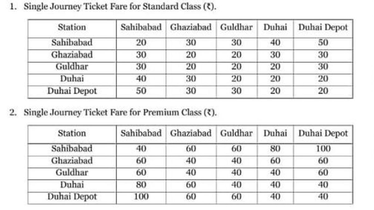 Standard Class prices will vary between Rs 20 and Rs 50, while Premium Class fares will commence at Rs 40 and extend up to Rs 100. A journey from Sahibabad to Ghaziabad in standard class will take only 30 rupees whereas passengers will need to pay 60 for the premium service.
