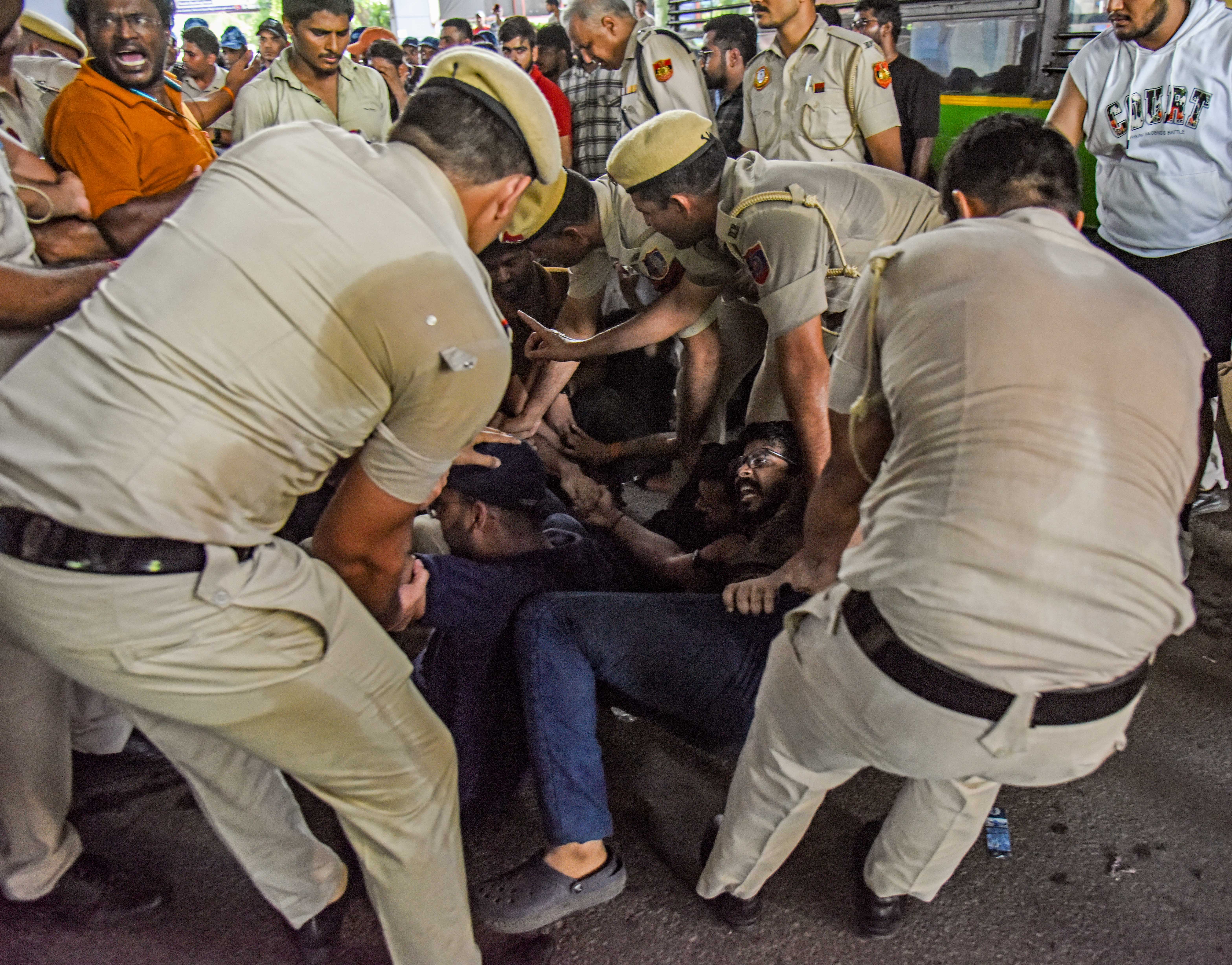 4. After a large number of students gathered in Karol Bagh against the incident, the police used light force to disperse them. Many students were shortly detained, before being freed later on. Several videos surfaced on social media showing Delhi Police detaining the UPSC aspirants.