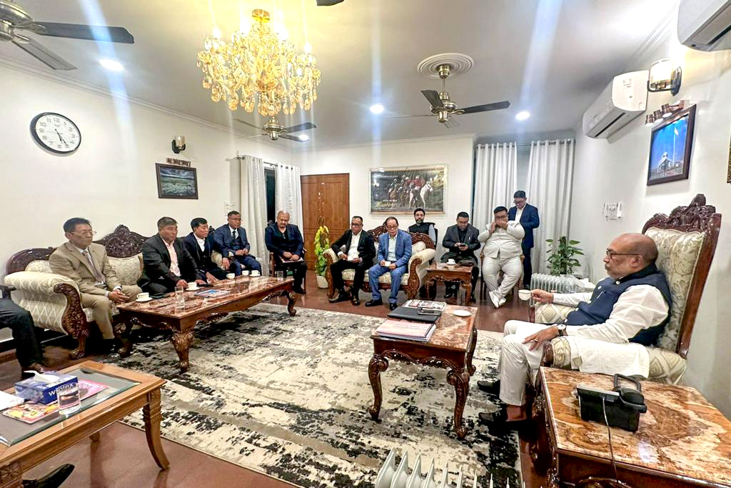 Manipur Chief Minister N Biren Singh during a meeting with United National Liberation Front (UNLF), an insurgent group of Manipur, after they signed a peace agreement with the Central Government, on Wednesday. (ANI Photo)