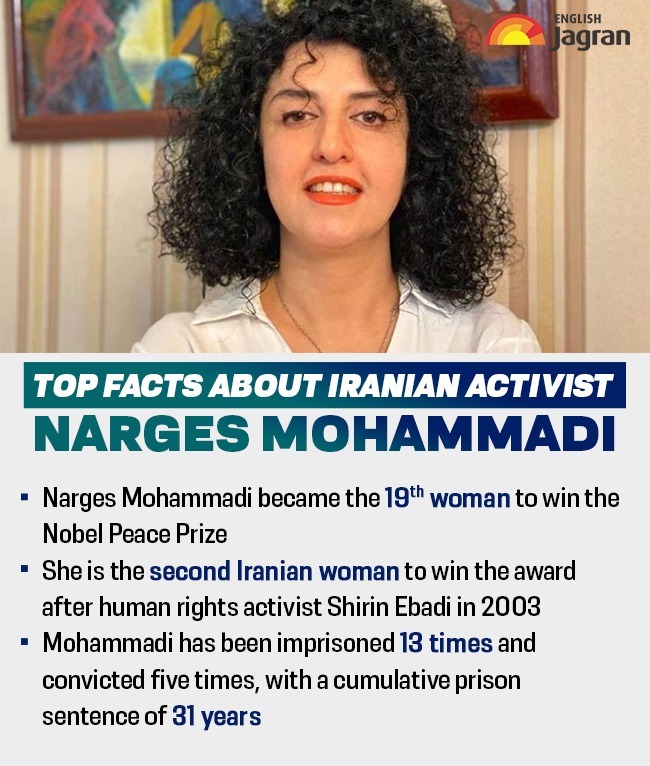 Iranian human rights activist Narges Mohammadi has been awarded the Nobel Peace Prize 2023 for her fight against the oppression of women in Iran. She became the 19th woman to win the Nobel Peace Prize and the second Iranian woman to win the award after human rights activist Shirin Ebadi in 2003.