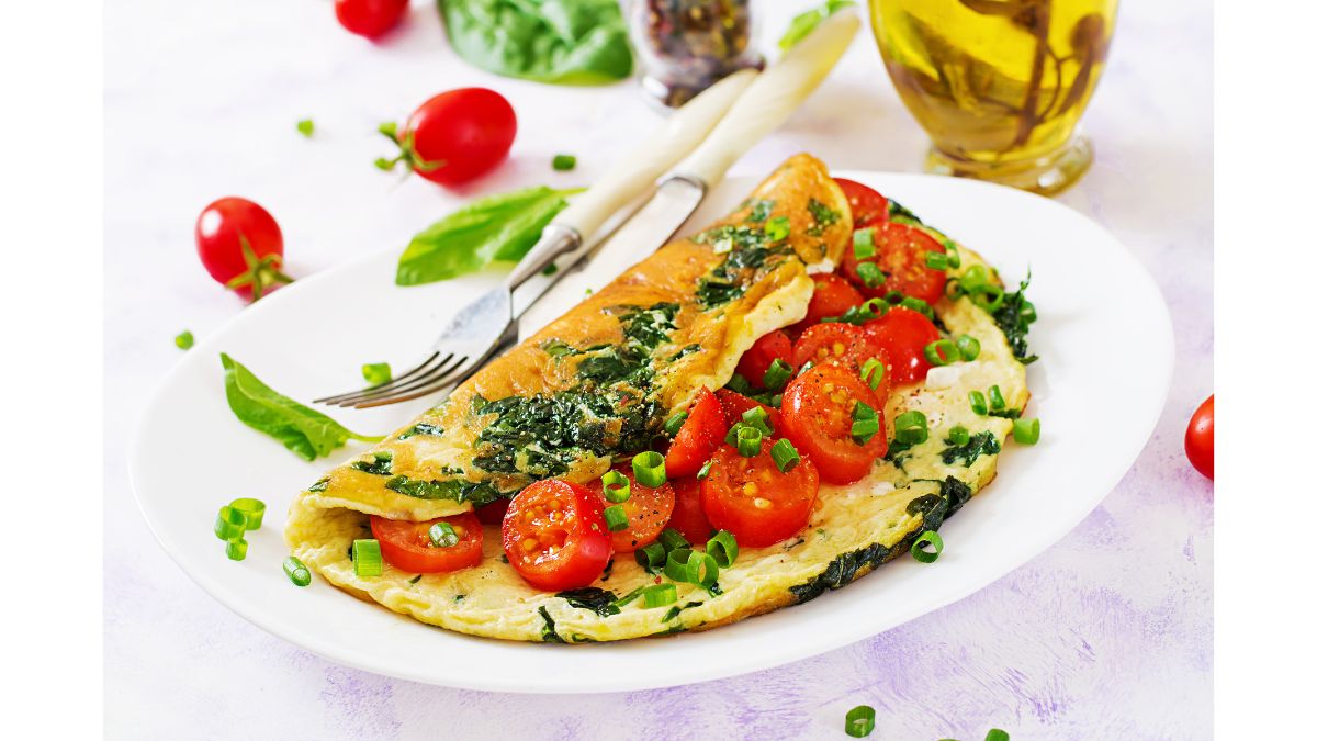 Take three to four eggs, a small onion, a small tomato, a green chilli, chopped fresh coriander, turmeric powder, salt, butter, and lemon juice to make an omelette. Using a fork, beat the eggs in a nonstick skillet. Cook the beaten eggs in melted butter in a pan, being careful not to cook them too much. After adding the contents, fry the eggs for an additional few seconds. Serve the omelette hot after folding it in half.