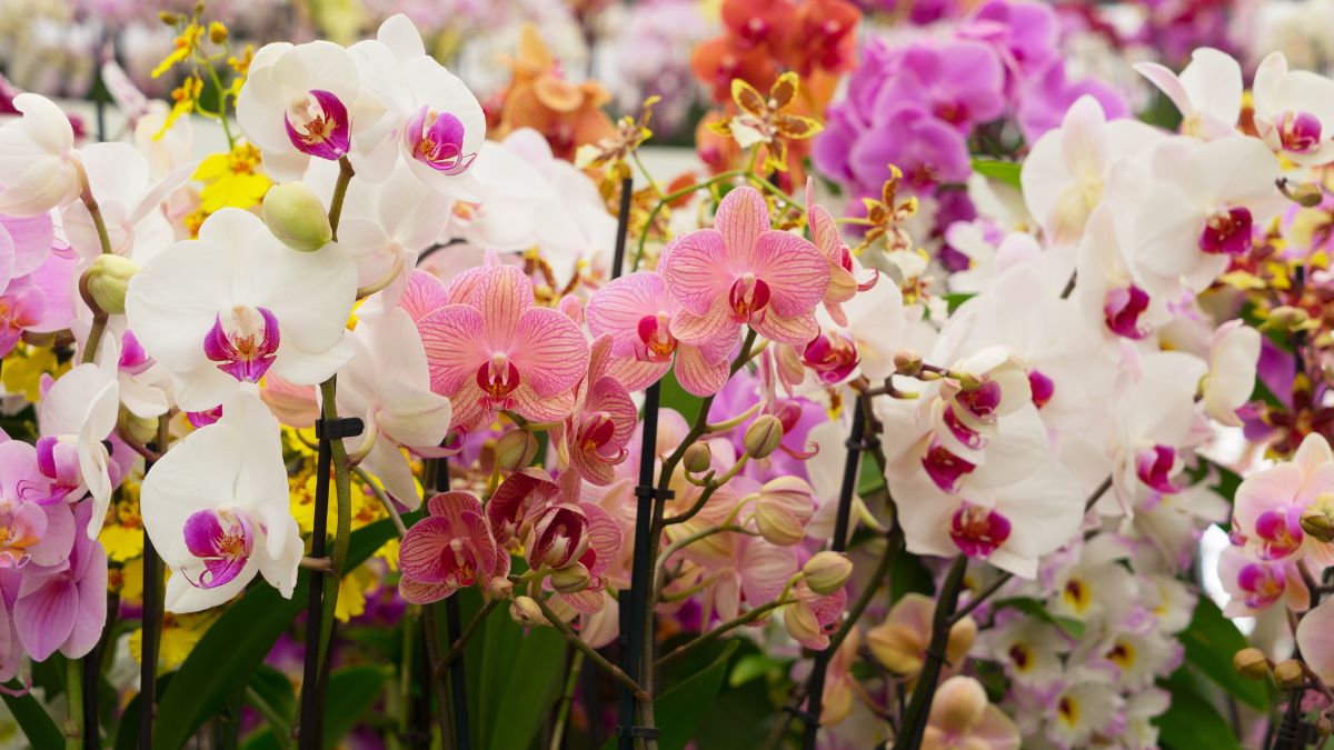There are so many different colors of orchids to choose from. In addition to being aesthetically pleasing, orchids require little maintenance and can be great winter plants to add some color to your landscape. They simply need to be watered once a week and do well in strong indirect light.