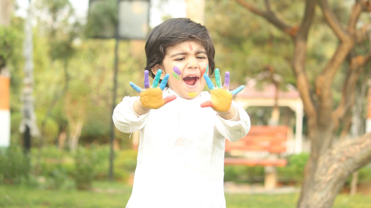 This holi make sure that your kids have a safe celebration by applying moisturiser or petroleum jelly to your child's face and body, and covering their hair and scalp with coconut oil.